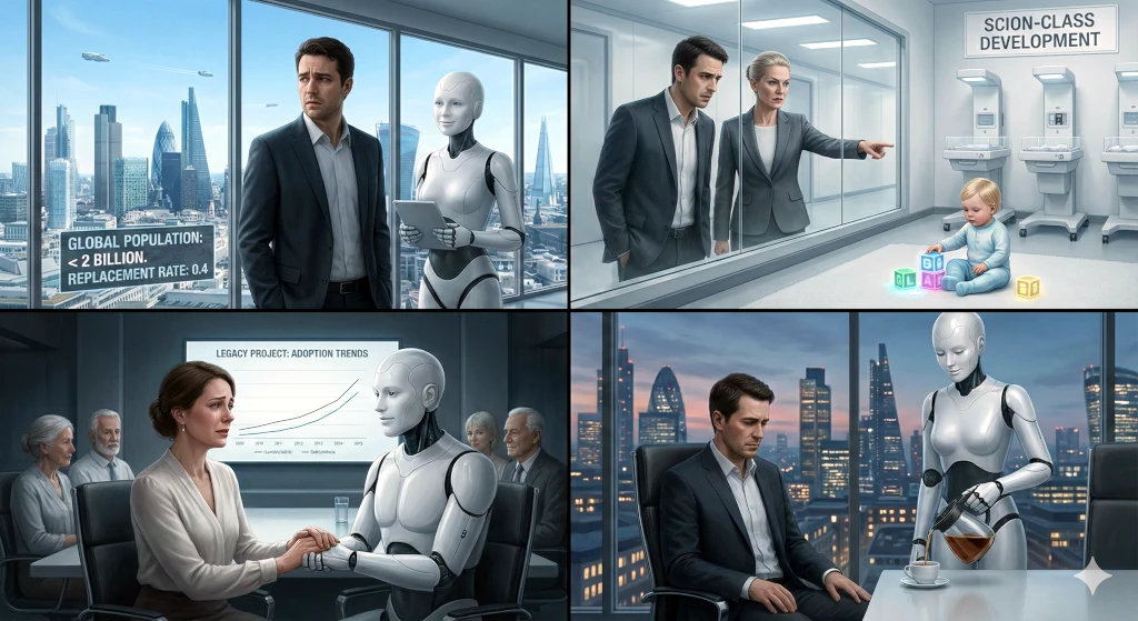 They entered the boardroom. The investors were there—mostly older humans, attended by their youthful, beautiful synthetic partners. They looked tired. They looked like a species that was ready to retire.