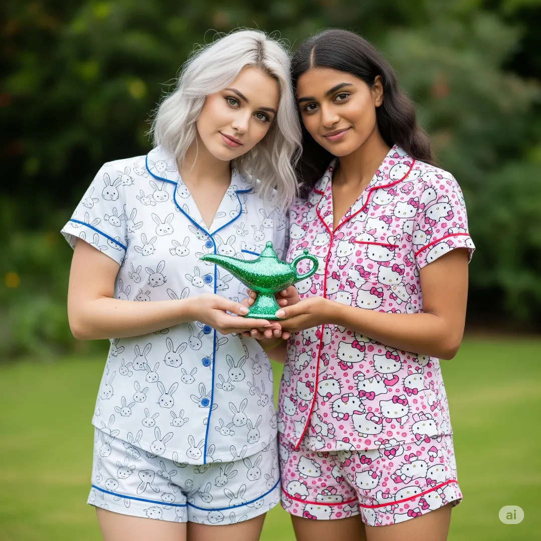 Ella and Eileen exchange a glance, undeterred, and hold the lamp together.