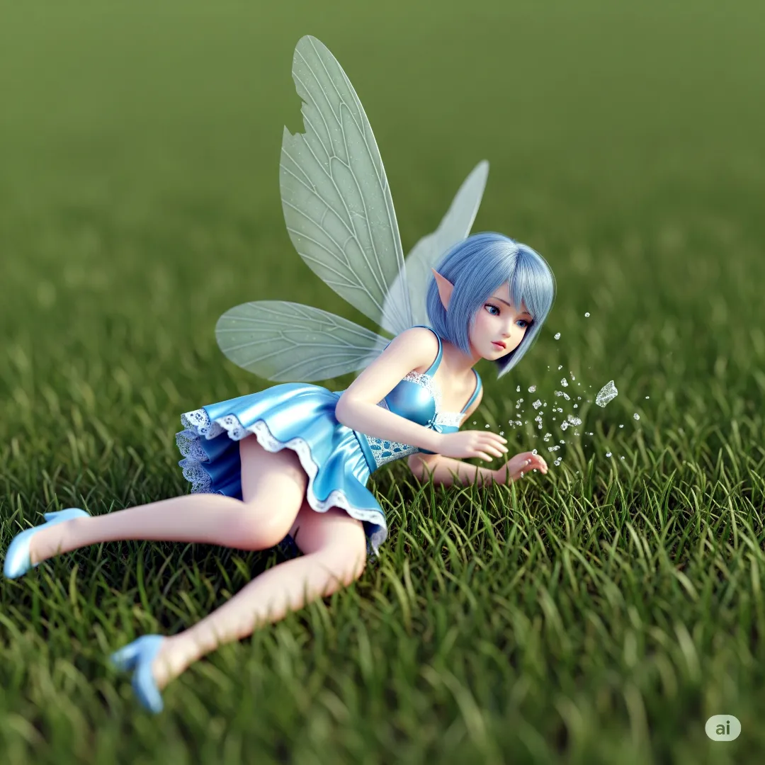 It was a girl, but not human. Her steel-blue hair shimmered like polished slate, cascading over a delicate dress of satin and lace, the fabric torn at the edges as if caught in a storm. Her wings—gossamer, veined with silver like stained glass—twitched weakly. She was a fairy, straight out of the old Cornish tales Eileen's gran used to tell, but her presence felt… wrong, like a piece of a dream that didn't belong here.