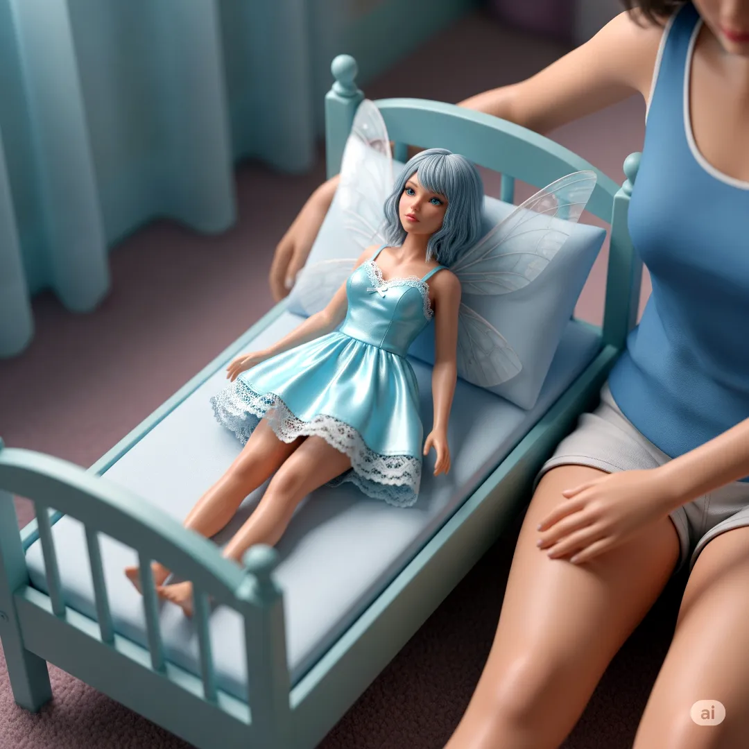 Eileen's bedroom was a sanctuary of soft light and teenage chaos—band posters peeling at the edges, a cluttered desk, and a faint scent of lavender from a candle she'd forgotten to blow out. She rummaged through a dusty box under her bed, pulling out a relic from her childhood: a tiny baby doll bed, its turquoise plastic frame chipped but intact. She lined it with a scrap of flannel, creating a makeshift haven for the fairy, who still looked dazed from her collision with the window.