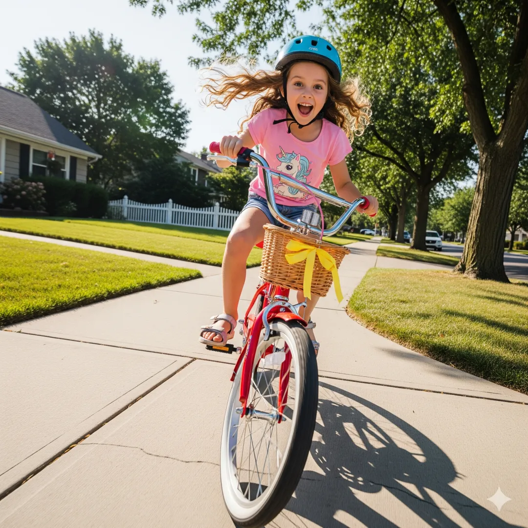 Oh, and my first bicycleâwhat a saga! After begging for one relentlessly, I woke up on my seventh birthday to find a shiny red two-wheeler with training wheels. But riding it was a disaster. My advanced stabilization gyroscopes weren't properly synced with the bicycle-riding software patch. I wobbled like a drunken sailor, crashing into hedges and scraping my knees. "I can't do it!" I wailed in frustration. That night, after I was asleep, I was whisked away for a secret upgrade. They fine-tuned the balance algorithms, and I woke up the next morning none the wiser. Suddenly, I could ride. Pedaling felt as natural as breathing, and the feeling of freedom as I flew down the sidewalk was pure, unadulterated joy.