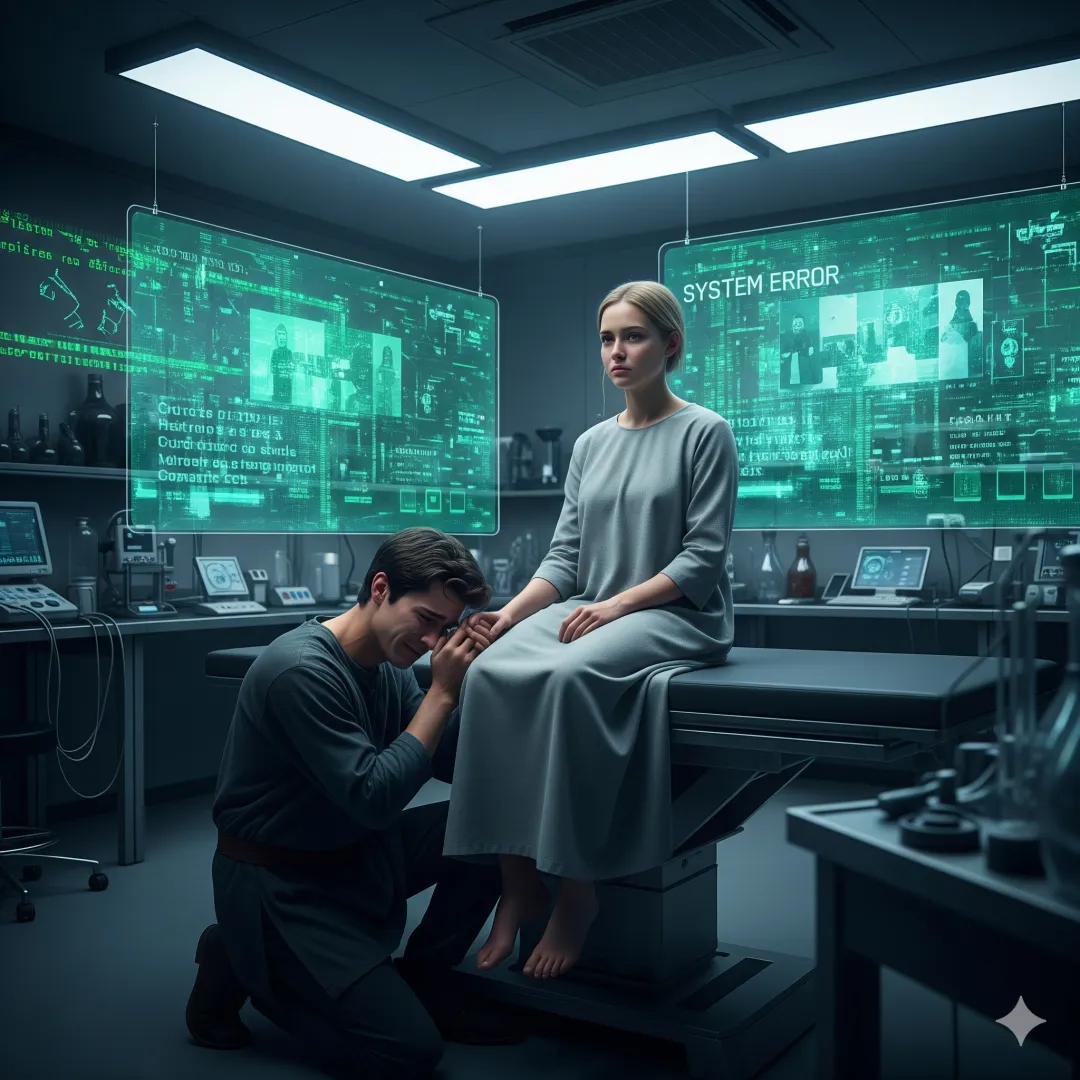 I pushed on, but soon, I hit a wall. The forgetfulness became debilitating. Iâd start a task and lose my train of thought mid-way, left staring blankly at a screen of numbers that no longer made sense. Worse, my memories began to jumble. Hallucinations crept in like ghosts in my machine. Iâd swear Iâd had a meeting with a client, only to realize my fractured mind had fabricated the entire event. I'd laugh at jokes David never told. The underground lab became my refuge. They ran tests for weeks, but the verdict was final. There was no cure. "Maybe in the future, with the next model," they offered, a thin, useless thread of hope. The choice was mine: self-deactivate and go into stasis to wait for a miracle that might never come, or let my mind slowly fade into oblivion. David held my hand, his face a wreck of tears. "I can't lose you," he whispered. But I saw the toll it was taking on him, the endless battles and the slow, painful process of watching me disappear. Self-deactivation felt like surrender, but I knew it was also an act of mercy.